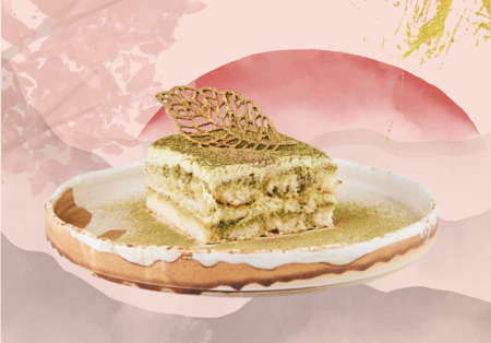 Z kremem mascarpone, biszkoptem i zieloną herbatą matcha.