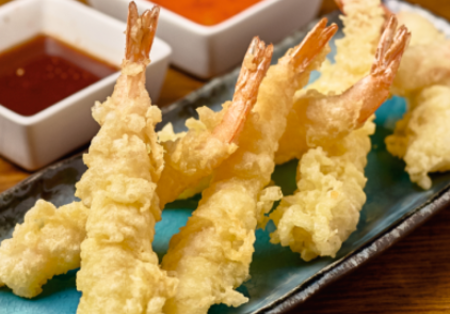 Tuńczyk tataki z shiso w tempurze i autorską salsą sambal.